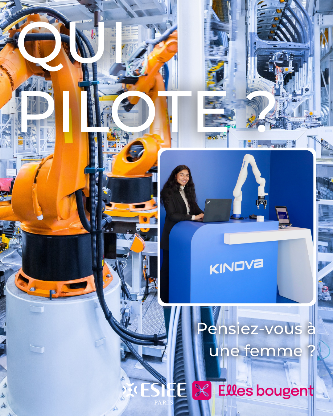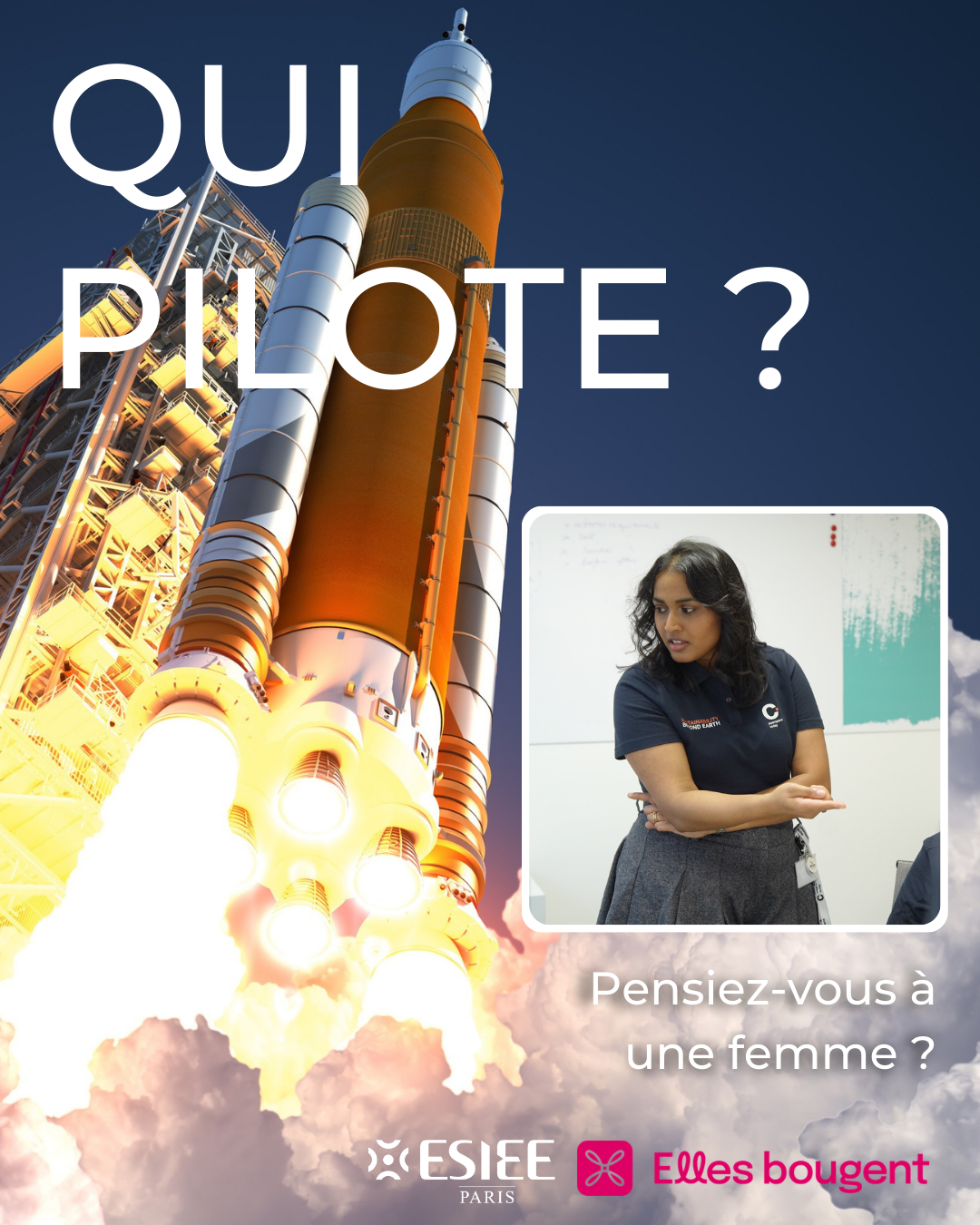 Nous avons également participé à la campagne digitale du 8 mars de l'association Elles bougent, dont nous sommes partenaires depuis de nombreuses années.L’édition 2026 est intitulée « Qui pilote ? », pour interroger nos représentations et bousculer les idées reçues. Quatre alumni ESIEE Paris ont été mises en avant, dans les secteurs du spatial, du maritime, de la robotique et de l’automobile :