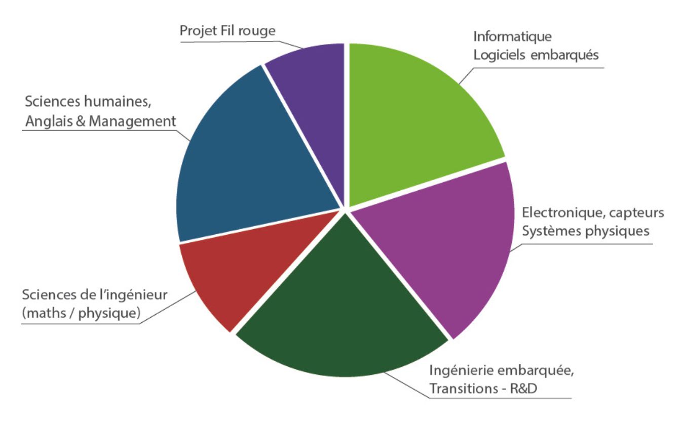 Le programme comprend des enseignements mixtes : cours, travaux dirigés, travaux pratiques, propices à approfondir les concepts utilisés pendant les missions menées en entreprise.